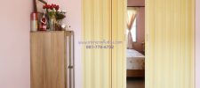บริเวณหน้าบ้านมุมของโรงรถ ลูกค้าเลือกใช้ฉากกั้นห้อง ลายไม้ สีครีม เพื่อกั้นบริเวณให้เป็นมุมห้องอีกมุมของตัวบ้าน เพื่อสำหรับไว้ใช้สอยประโยชน์ต่างๆ อีกทั้งสามารถพับเก็บได้อย่างเป็นระเบียบเรียบร้อย ไม่เกะกะบริเวณหน้าบ้าน ของลูกค้า