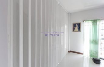 ผลงานติดตั้งฉากกั้นห้อง พีวีซี แบบทึบ ลวดลายไม้ สีครีม ติดตั้งเพื่อช่วยกั้นห้องแบ่งพื้นที่ให้ดูเป็นสัดส่วน ที่หมู่บ้านนิรันดร์วิลล์ ศรีด่าน 22